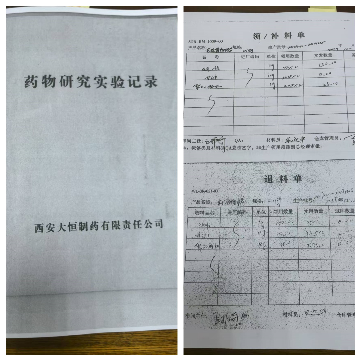 西安大恒制药也在一审过程中提出,对上述证据的真实性不认可。一审庭审资料显示,西安大恒制药称,省药监局提供的领补料单、退料单无进厂编码,与原告一式三联的生产记录完全不符。其自行制作的货值金额统计表作为认定原告的违法所得及罚没金额的依据的最重要的证据均为被告自行制作,没有原告确认,被告在作出行政处罚中多处证据存在认为拼接的情况。